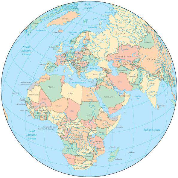 Europe Africa world map continent country Stock Illustration